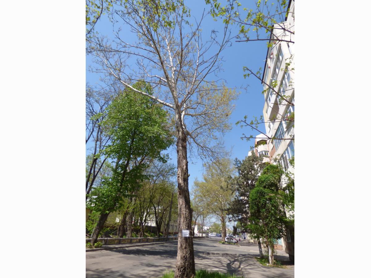 Apoi, la mică distanţă, pe un ditamai copacul ce tinde spre uscare, cineva a lipit trei avertismente cu „Atenţie – copac crăpat”. O altă surpriză neplăcută e reprezentată de un stâlp de electricitate rămas captiv de ani de zile, într-un ... chioşc !!! Mai mult, respectivul stâlp este ancorat de un arbore, cu o sârmă de fier beton care a pătruns copacul dincolo de coaja acestuia. Comentariile sunt de prisos...
