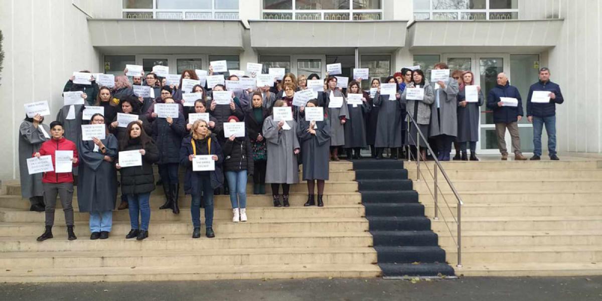 Astăzi, timp de patru ore, în intervalul orar 10.00 - 14.00, este suspendată activitatea instanțelor, inclusiv ședințele de judecată. Grefierii protestează și cer acordarea drepturilor legale. În fața Palatului de Justiție Brăila, grefierii și-au spus nemulțumirile și au adăugat că vor intra în greva foamei, dacă nu se rezolvă problemele semnalate.