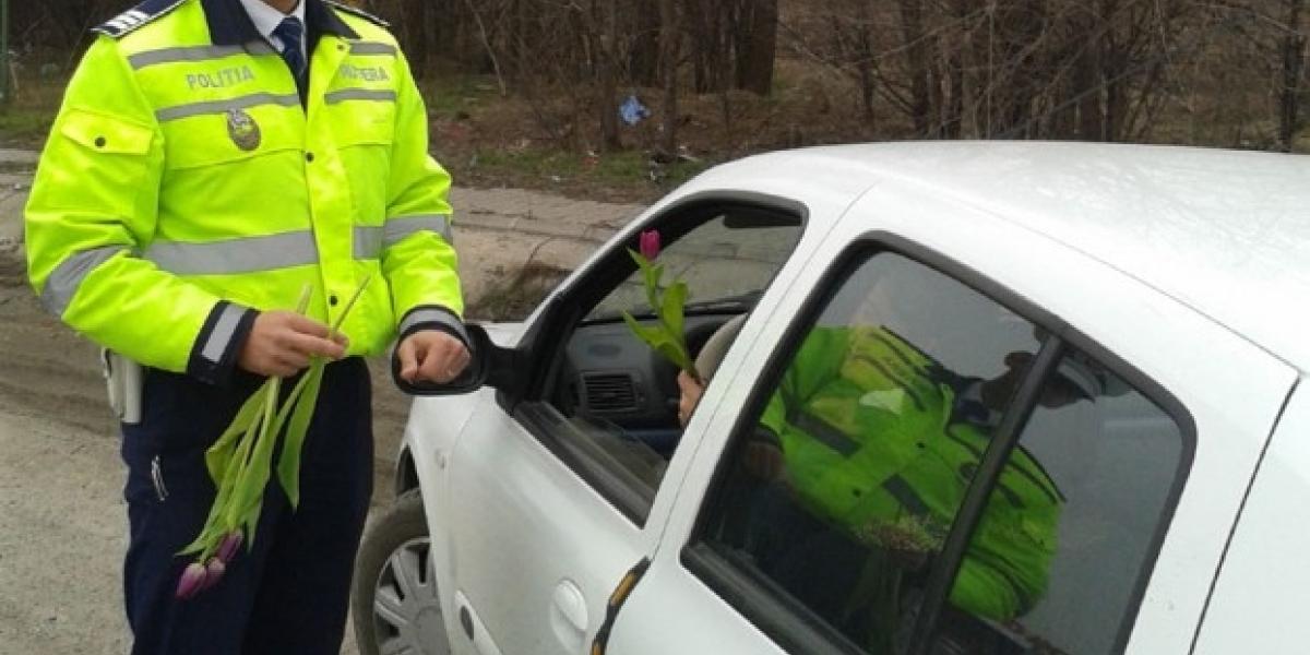 Ieri, în ziua de 1 Martie, brăilencele care s-au urcat la volan au avut din nou parte de surprize plăcute din partea poliţiştior rutieri. "Amenzile" au fost doar frumos mirositoare, ca în fiecare an de 1 Martie. Înarmaţi cu sute de flori, poliţiştii rutieri au acţionat pe arterele intens circulate, pe Calea Călăraşilor şi în zona Carrefoul Mall.