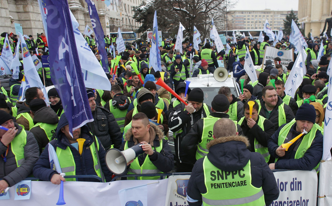 Peste 200 de polițiști sindicaliști, angajați ai Inspectoratului de Poliție Județean Brăila, din cadrul sindicatelor Diamantul, Sindicatul Național al Polițiștilor, ProLex, la care se adaugă și polițiști de penitenciare de la Penitenciarul Brăila, participă astăzi, 17 ianuarie, la protestul de amploare de la București.