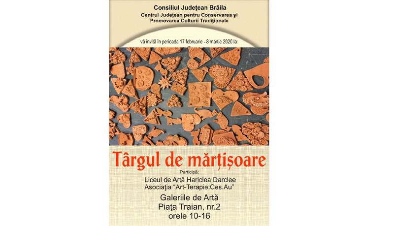 În perioada 17 februarie - 8 martie 2020, la Galeria de Artă Brăila, din Piaţa Traian nr. 2 este deschis Târgul de mărţişoare. Evenimentul este organizat de Consiliul Judeţean Brăila, prin Centrul Judeţean pentru Conservarea şi Promovarea Culturii Tradiţionale Brăila, cu participarea Liceului de Arte “Hariclea Darclée” Brăila şi Asociaţia Art-Terapie Ces.Au Brăila.