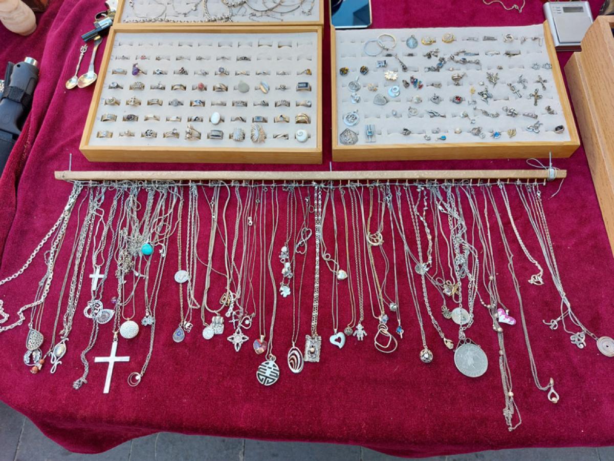 În dreapta Căii Regale, când vii dinspre Cuza, și-a expus taraba cu bijuterii și cu obiecte vechi brăileanul Vasile Atanasiu, un veteran al târgului, care are câte ceva de povestit pentru fiecare mușteriu care zăbovește în fața artefactelor. Mai departe, îți face cu ochiul taraba buzoianului Ticu Negoiță, care expune, cu mândrie, arme din cele două Războaie Mondiale, goblenuri, bijuterii vintage, medalii, ba chiar și o sabie perfect conservată, din secolul XVIII. Domnul Negoiță nu a venit singur la târg, a adus cu sine și vreo patru concitadini, toți negustori de antichități.