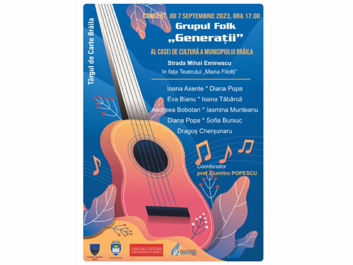 Iubitorii de lectură care vor veni astăzi și mâine la Târgul de Carte vor avea parte de două concerte de muzică folk. Astăzi, 7 septembrie, de la ora 17.00, va concerta Grupul Folk “Generații” al Casei de Cultură a Municipiului Brăila. Vineri, 8 septembrie, de la ora 17.00, va cânta trupa “Antic”. Ambele spectacole vor avea loc în fața Teatrului “Maria Filotti”.