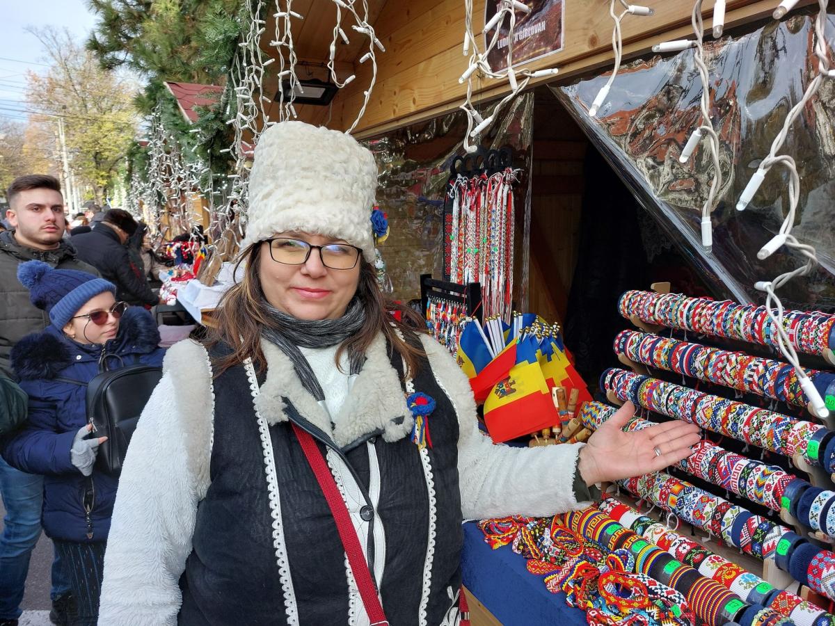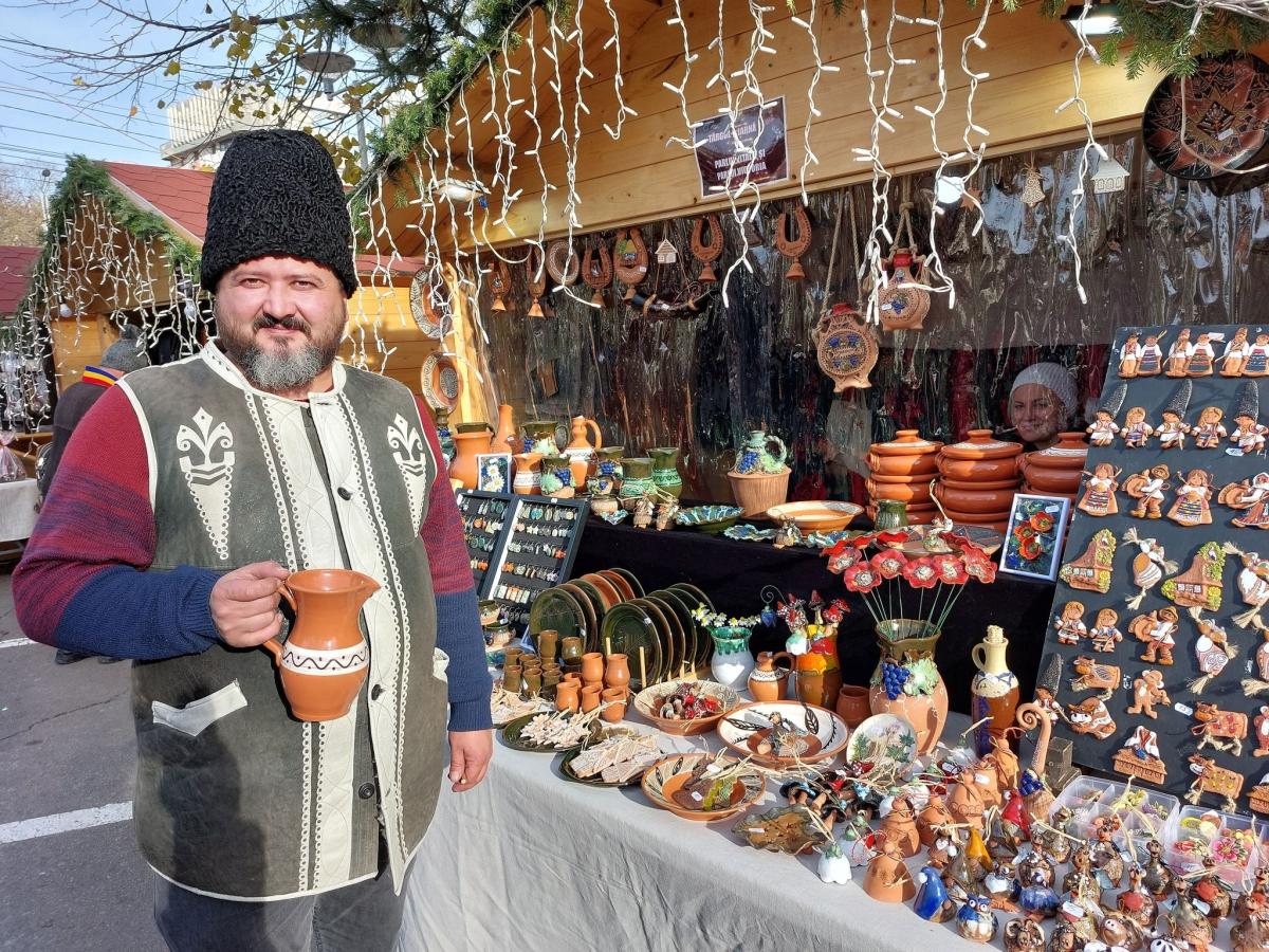 L-am reîntâlnit aici pe Badea Costică, meșterul popular de la Joldești (Vorona) - meșter din tată-n fiu, alături de soția sa, Mia, coborât parcă de pe Columna lui Traian - care, anul acesta, a fost declarat „tezaur uman viu” și cetățean de onoare al comunei natale. Badea Costică are cele mai bune căciuli de miel de țurcană și karakul, dar și curele din piele argăsite cu dibăcie. Alături, și-au întins „comorile” aduse din Chișinău basarabenii din Asociația Meșterilor Populari din Republica Moldova. Soții Vitalie și Victoria Parlui - lectori la Academia de Muzică, Teatru și Arte Plastice din Chișinău - expun oale din lut, urcioare, burlui și farfurii lucrate în propriul atelier. O altă basarabeancă, Ludmila Cîrlovan, vicepreședinte al AMP, ne arată minunatele brățări și zgărdane lucrate din mărgele, iar Nelea Ceban păpuși tradiționale și produse lucrate de mână, aduse tocmai de la Chișinău.