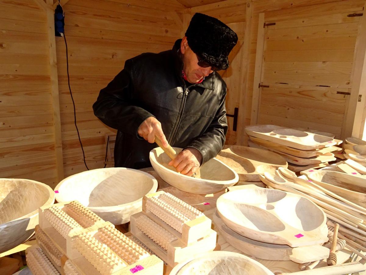 Tot prima participare la un târg organizat la Brăila a fost şi pentru George Cimpoeru, din Vâlcea, care a expus obiecte din lemn. Pe unele dintre ele le-a lucrat chiar acolo, în căsuţa primită de la Primărie. De la câţiva lei pentru o lingură sau 2-300 de lei pentru o albie, marfa sa nu a fost ocolită de brăileni. “Cele mai bune vânzări le-am avut pe 1 şi 2 decembrie. În cursul săptămânii a mers ceva mai slab, dar sperăm că sâmbătă şi duminică, înainte de închiderea târgului, o să avem mai mulţi clienţi”, ne-a mărturisit vâlceanul.