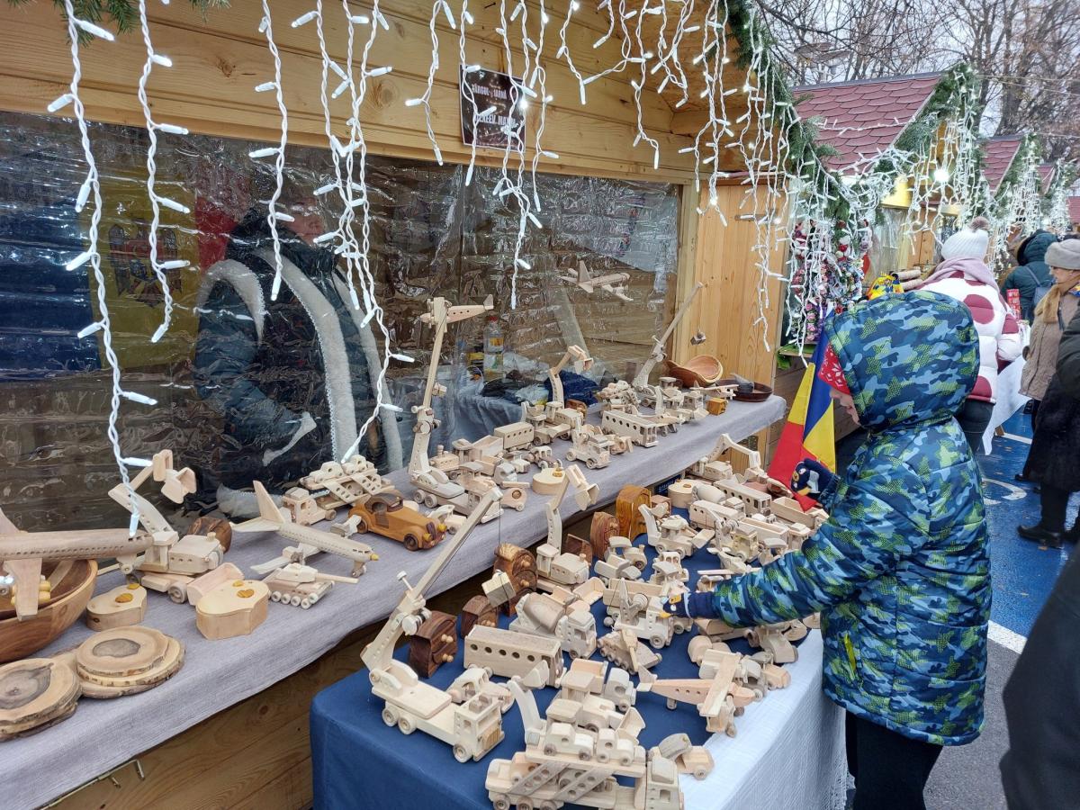 Sosiți tocmai din comuna Molovata Nouă, Raionul Dubăsari (din porțiunea rămasă sub controlul autorităților Republicii Moldova), Elena și Alexeev Maxim expun jucării ecologice confecționate din lemn de arțar, nuc și fag, combinând în așa fel nuanțele de lemn încât să dea impresia că ar fi colorate. În realitate, toate mașinuțele, avioanele și macaralele confecționate de meșterul Maxim sunt din lemn șlefuit cu multă iscusință, realizate la scară și la prețuri accesibile. Cel mai ieftin produs costă 5 lei, iar cel mai elaborat vreo două-trei sute. „Soțul meu a moștenit acest meșteșug de la bunelul și de la tatăl său. De 12 ani expunem aceste jucării ecologice din lemn și venim la Târgul de Iarnă de la Brăila cu mare plăcere, cu toate că avem foarte mult de călătorit”, ne-a mărturisit Elena Maxim, care-și expunea minunățiile la una dintre căsuțele de lemn instalate în parcarea de lângă Primăria Municipiului Brăila.