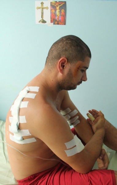 Internat la Spitalul Judeţean de Urgenţă Brăila, Secţia Chirurgie, Georgel Gabriel Radu ne-a povestit, cu vocea slăbită din cauza suferinţei prin care trece, despre incidentul produs duminică noaptea. El a spus că ceilalţi tineri, cu care el şi cei doi amici s-au întâlnit pe strada Şcolilor, i-au luat la bătaie şi au lovit cu cuţitele în stânga şi în dreapta, fără vreun motiv concret. Georgel ne-a relatat că el nu îi cunoştea şi nici nu a reacţionat în vreun fel, însă s-a trezit pus la pământ fără să înţeleagă de ce. "Au lovit cu cuţitul, ne-au bătut degeaba. Au început să ne ia la bătaie, eu nici nu îi cunoşteam. Unul dintre prietenii mei s-a oprit să vorbească cu unul dintre ceilalţi şi au început să dea în noi, ne-au dărâmat pe jos, au dat cu cuţitul. Am căzut, aveam pulsul zero când au venit medicii, nu am mai ştiut de mine, mi-am pierdut cunoştinţa. Pur şi simplu ne-a luat la bătaie degeaba. Am ajuns până la un chioşc de acolo, am căzut, au sunat prietenii mei la salvare, a sunat şi lumea care trecea pe stradă şi a văzut. Au dat cu cuţite, săbii, eu nu am mai realizat nimic, nici nu ştiu dacă a dat numai unul sau mai mulţi. De la poliţie am înţeles că doar unul a dat cu cuţitul", a relatat tânărul.