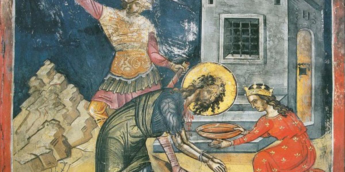 Din Sfânta Evanghelie cunoaştem că Irod, la un ospăţ prilejuit de sărbătorirea zilei sale de naştere, i-a tăiat capul Sfântului Ioan Botezătorul la cererea Irodiadei. Sfântul Ioan era întemniţat în castelul lui Irod de la Maherus. Ioan îl mustrase pe Irod pentru traiul lui nelegiuit cu Irodiada, care era soţia fratelui său. Urându-l de moarte pe profet, Irodiada a sfătuit-o pe Salomeea, fiica sa, care dansase provocator şi plăcuse oaspeţilor, îndeosebi lui Irod, să ceară de la acesta capul Botezătorului, drept răsplată.