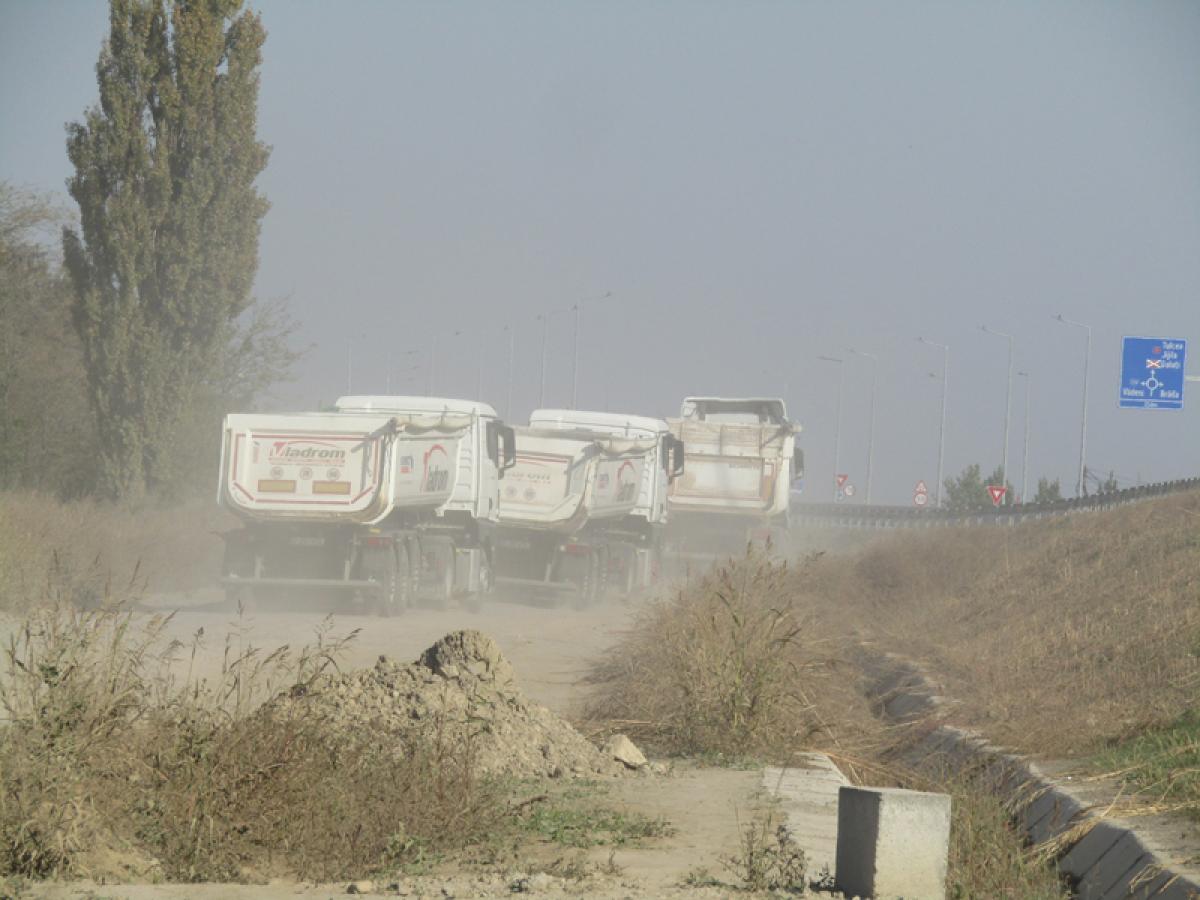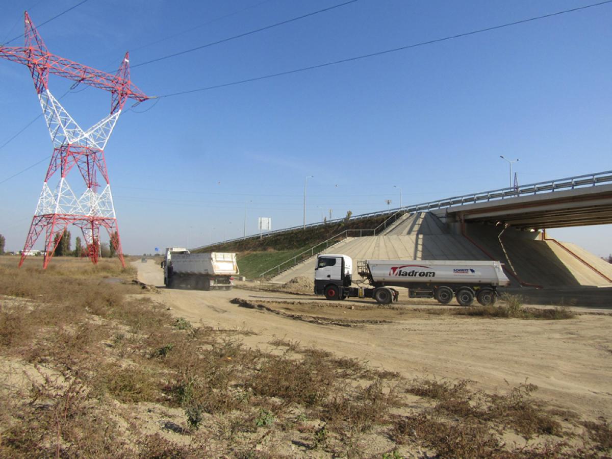 • după ploile din urmă cu câteva săptămâni, pământul a început să o ia la vale, apărând șanțuri care arată cât de deficitar a fost compactat acest taluz • podul în cauză a fost terminat de luni de zile dar nici până acum nu a fost dat în folosință, deși are o importanță foarte mare, asigurând legătura Șoselei de Centură cu podul peste Dunăre, fiind totodată o rută importantă de conectare a cartierelor Chercea și Vidin • în disperare de cauză, mulți șoferi de TIR folosesc vechea trecere la nivel peste calea ferată, mergând pe sub pod și în paralel cu taluzul acestuia, pe drumuri rămase din organizarea de șantier, pline de gropi și praf, respectiv bălți și noroi în perioadele ploioase
