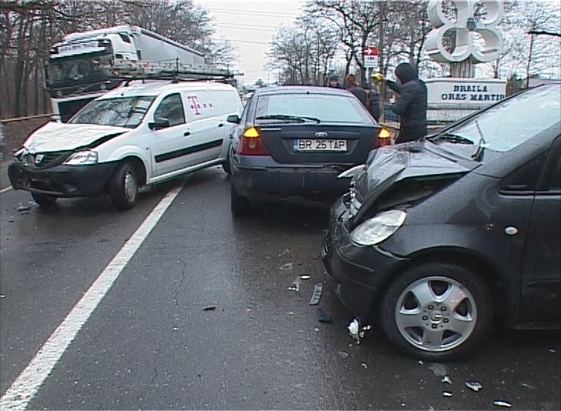 Carambol, astăzi, la intrarea în municipiul Brăila, pe DN 2 B, la 100 de metri de intersecția Șoselei de Centură cu Buzăului, aproape de sensul giratoriu de la OMV.