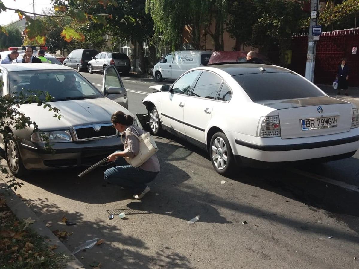 După primele cercetări efectuate de polițiști a reieșit faptul că o șoferiță care circula cu un Peugeot pe str. Griviței a vrut să întoarcă și a intrat pe o străduță paralelă cu G-ral Eremia Grigorescu. Numai că atunci când a revenit pe str. Griviței nu s-a asigurat și s-a tamponat cu un alt autoturism. În urma impactului, cele două mașini au ajuns pe contrasens, iar una dintre ele a ricoșat într-un al treilea care era parcat.