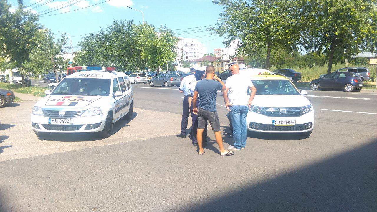 * în urmă cu puțin timp, un taxi a fost lovit din spate de un alt autoturism, pe fondul nepăstrării distanței regulamentare