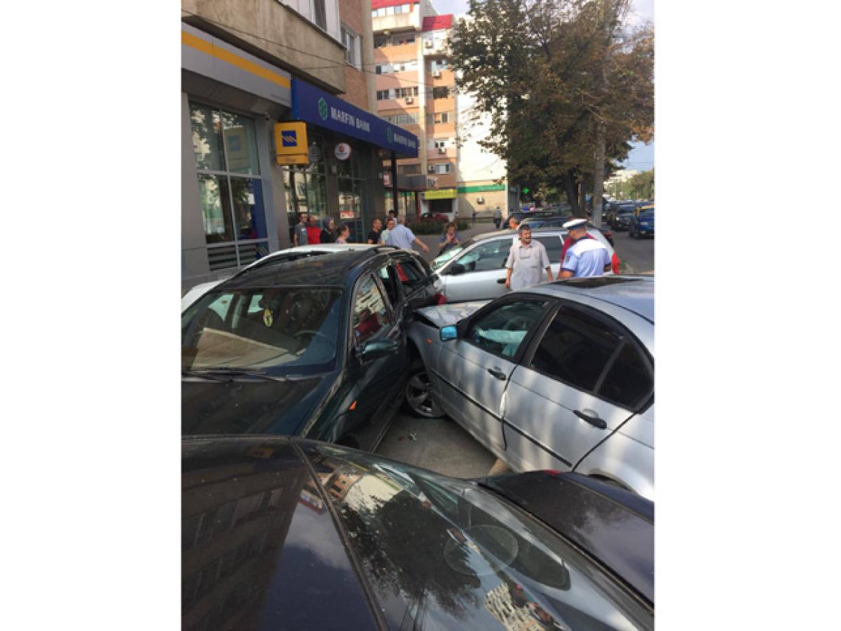 • luni după-amiază, în zona Piaţa Concordia, şase maşini au fost avariate serios, patru dintre acestea fiind parcate • totul a fost provocat de o femeie de 30 de ani care a vrut să vireze stânga şi nu a acordat prioritate altui autoturism • în urma coliziunii, maşina a ricoşat în alte patru • din fericire, evenimentul nu s-a soldat cu victime