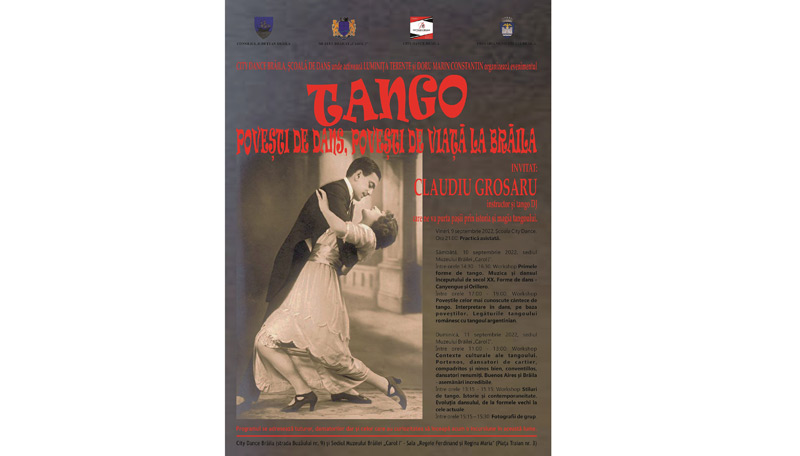 În perioada 9 - 11 septembrie a.c., Muzeul Brăilei "Carol I", în colaborare cu City Dance Brăila - școală de dans unde activează Luminița Terente și Doru Marin Constantin - organizează evenimentul "TANGO. Povești de dans, povești de viață la Brăila". Invitat al manifestării este Claudiu Grosaru (Brașov), instructor și tango DJ, "care ne va purta pașii prin istoria și magia tangoului".