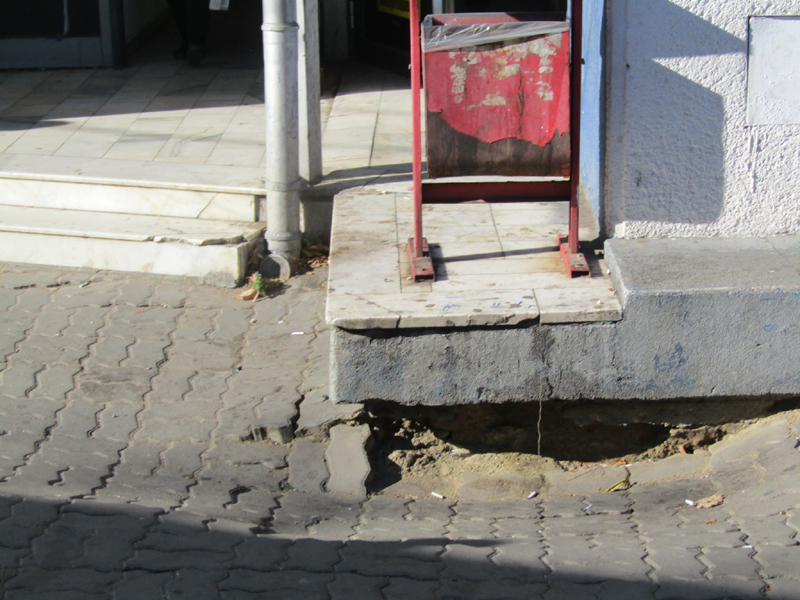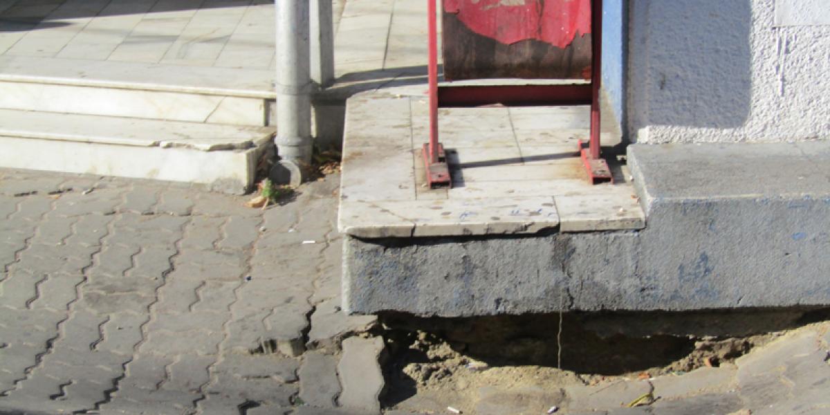 • apariția acestei tasări este surprinzătoare, mai ales în contextul în care fundația clădirii a fost executată, cu mult simț de răspundere, în anii '70 • cauza ar putea să țină de la un vechi canal colector care trece pe sub bulevardul Cuza