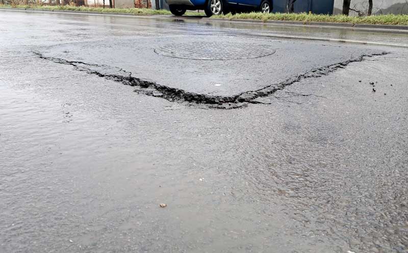 • locatarii zonei se tem să nu se întâmple un fenomen similar cu cel petrecut duminică pe strada Nicolae Bălcescu din Centrul Vechi, unde asfaltul s-a surpat sub roțile unui autobuz al Braicar • reprezentanții Primăriei ne-au transmis că vor face verificări la fața locului, pentru a se interveni cât mai repede dacă situația o va impune