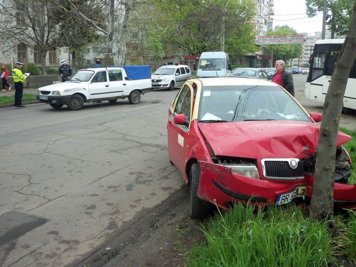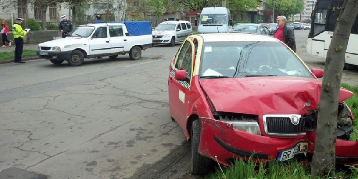 Accidentul rutier s-a produs la ora 8.00, chiar în dreptul Şcolii nr. 3. În urma cercetărilor efectuate la faţa locului, poliţiştii rutieri au stabilit că brăileanul care conducea "Dacia", Lucian P., de 60 de ani, a plecat de pe loc fără să se asigure. El a intrat în coliziune cu taxiul, care circula regulamentar. Acesta era condus de Ion Ş., de 68 de ani, care venea pe strada Pietăţii, dinspre Hipodrom, către Aleea Parcului. Şoferul nu a mai putut evita impactul cu cealaltă maşină şi, după izbitura puternică, a ricoşat într-un copac de pe partea stângă a direcţiei sale de mers. În taxi erau doi pasageri în vârstă, respectiv o femeie de 74 de ani, din Brăila, şi un bărbat de 80 de ani, din sat Tătaru. Amândoi au ajuns la spital, iar medicii au stabilit că leziunile suferite nu le-au pus viaţa în pericol.