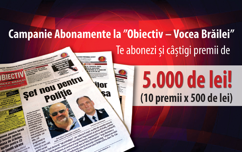 - contractarea abonamentelor pentru persoane fizice se va face la sediul redacției ”Obiectiv- Vocea Brăilei” din strada Mihai Eminescu, nr. 56, parter;