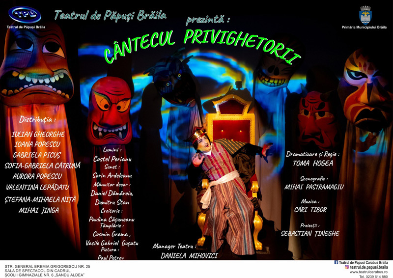 Apoi, săptămâna viitoare, pe 30 mai, Teatrul de Păpuși ”Cărăuș” Brăila va fi prezent la Festivalul Internațional de Teatru Arlechino -„Caravana poveștilor”, organizat la Teatrul Arlechino Brașov. De data aceasta vor participa la eveniment cu spectacolul ”Cântecul privighetorii”, regia Toma Hogea. Spectacolul prezintă o adevărată lume de basm. Împăratul Chinei află că există o privighetoare cu un glas unic, vrăjit și poruncește să fie adusă la palat, iar când o aude cântând, este fermecat de melodia ei minunată. Privighetoarea devine un oaspete de onoare la curte, dar nu este închisă într-o colivie și cântă din proprie voință. Spectacolul se dorește a fi unul modern, cu imagini și cadre teatrale, specifice universului inconfundabil al Chinei: rafinament, eleganță, stil, o coloană sonoră, cu atmosfera și tonurile specifice muzicii asiatice, totul într-o simbioză/armonie perfectă. Este o poveste despre frumusețea naturii și autenticitatea în fața artificiului.