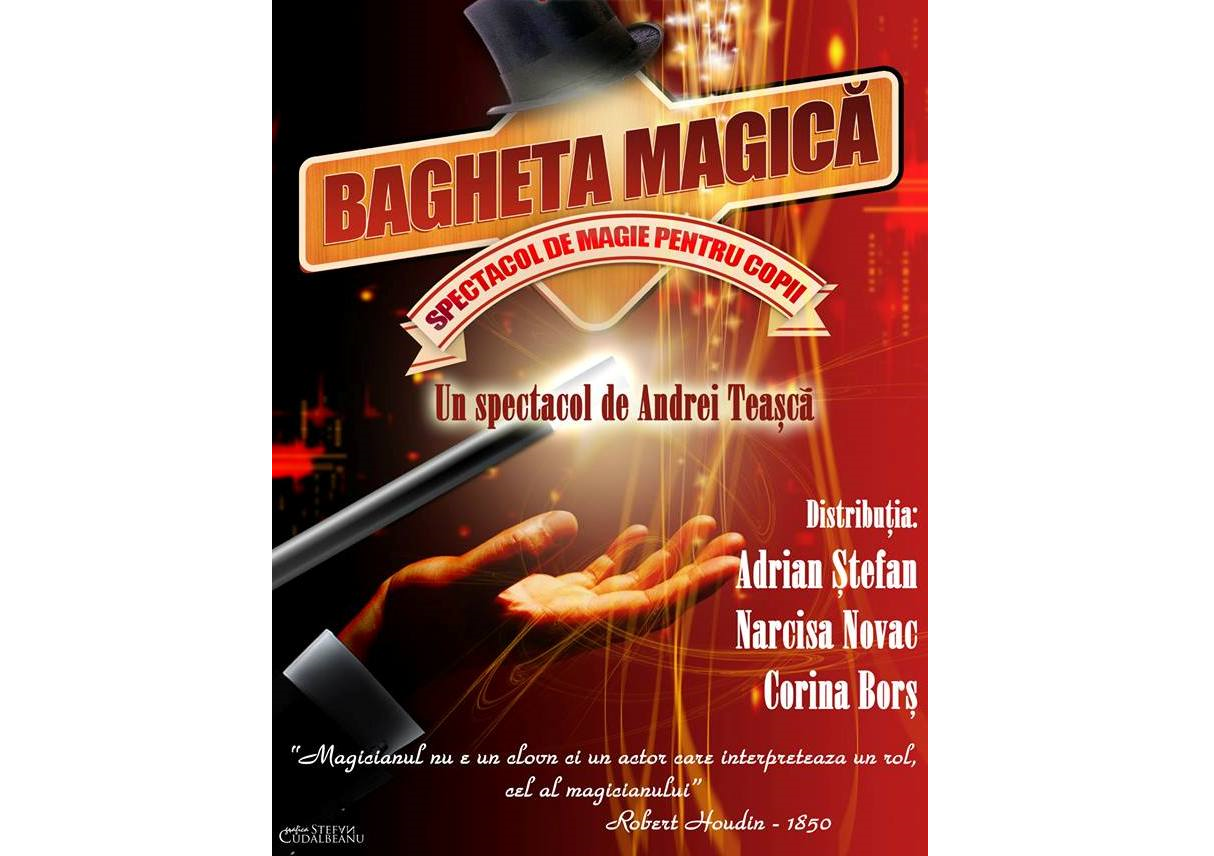 ” O oră de magie, comedie, suspens și bucurie! Entertainment de mare calitate! Puteti vedea sau revedea, copii, adolescenți, tineri, maturi, super-maturi, un cuceritor spectacol de teatru-magie, realizat de actorul și magicianul Andrei Teașcă, împreună cu minunații noștri colegi Narcisa Novac, Corina Borș și Adrian Ștefan, care se dovedesc nu numai grozavi actori dar și... magicieni!”, transmit reprezentanii Teatrului ”Maria Filotti”.
