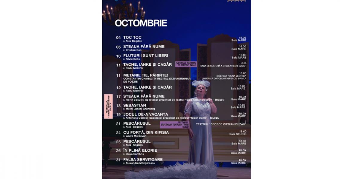 ORICE MODIFICARE ÎN PROGRAM VA FI ANUNŢATĂ ÎN TIMP UTIL. PENTRU RELAŢII CONTACTAŢI AGENŢIA TEATRALĂ 0239 /613969 SAU www.blt.ro/www.tmf.ro.