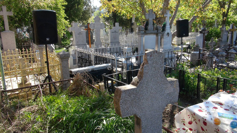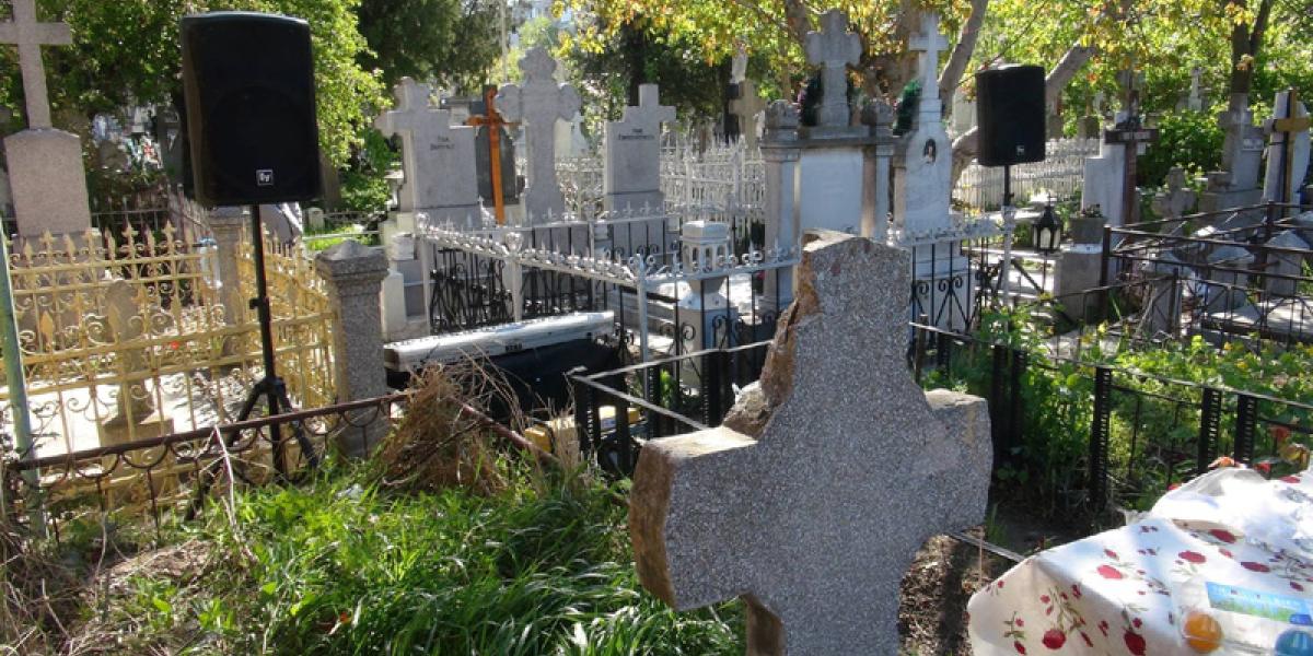 • o familie de romi a montat un set de boxe şi o staţie de amplificare, la care ar fi trebuit să dea un recital un lăutar adus de la Afumaţi • loviţi de refuzul categoric al poliţiştilor locali şi jandarmilor, romii au încercat să obţină permisiunea de a pune muzică direct de la conducerea Primăriei • au fost refuzaţi categoric, astfel că restul credincioşilor care au ajuns, ieri, în cimitirul “Sf. Constantin” au putut avea o sărbătoare mai liniştită • ca de obicei, toate cimitirele brăilene au fost pline, duminică şi luni, de credincioşii care au venit să dea de pomană răposaţilor, conform tradiţiei