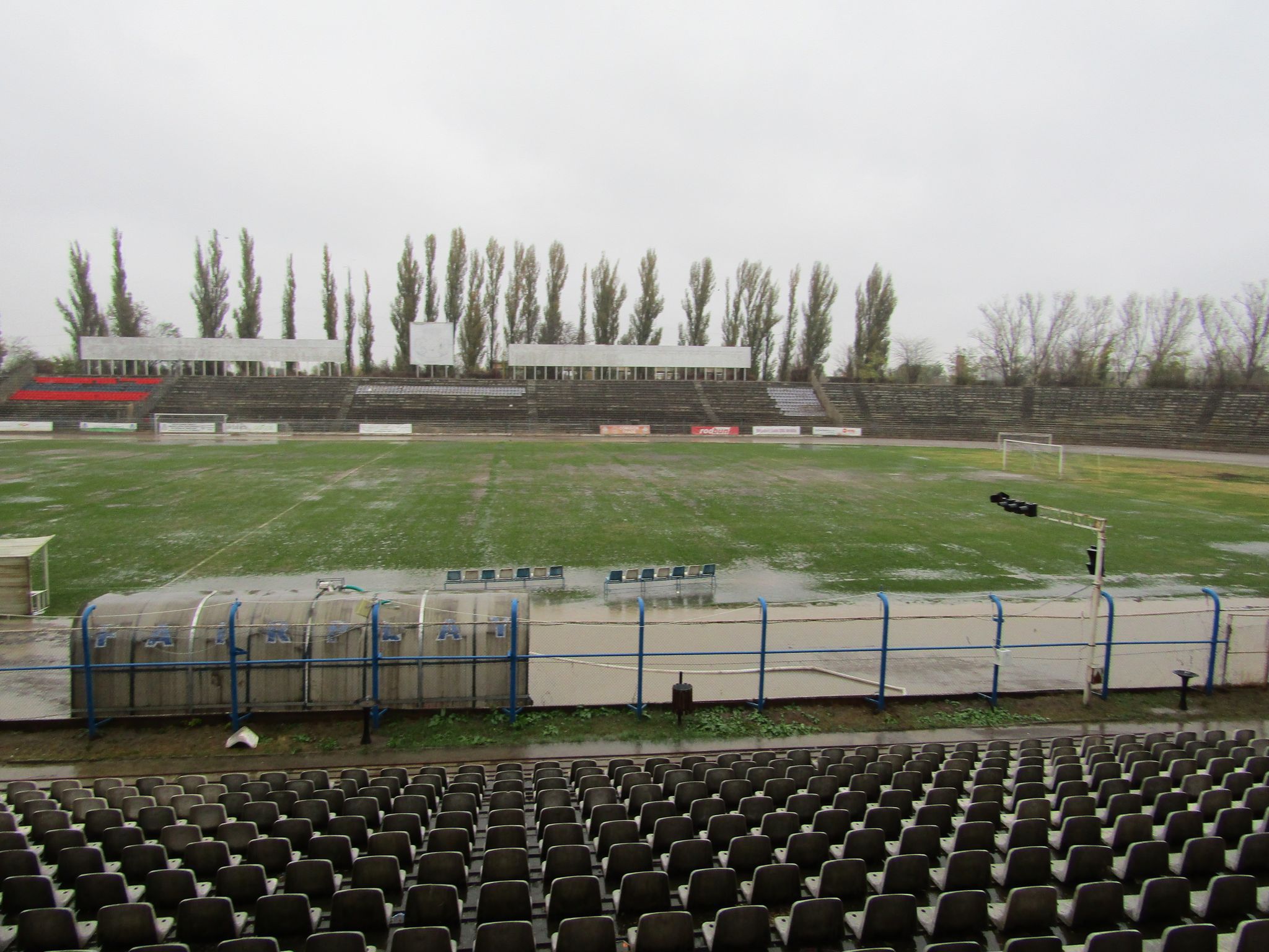 “Și înainte de aceste episoade ploua, câteodată torențial, dar apa se scurgea. Se pare că atunci când au pregătit pista pentru competițiile de dirt track din această toamnă, din neatenție s-au astupat gurile de scurgere. Așa că, pe lângă faptul că acest stadion nu mai corespunde de mult cerințelor fotbalului de performanță, zgura a pus capac gurilor de scurgere”, ne-a spus cu tristețe în glas suporterul care de 20 de vine la meciurile Daciei Unirea.
