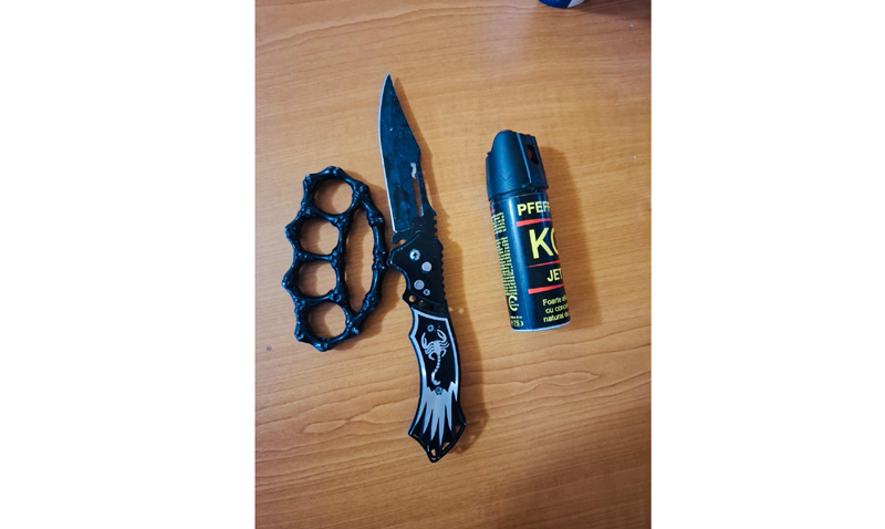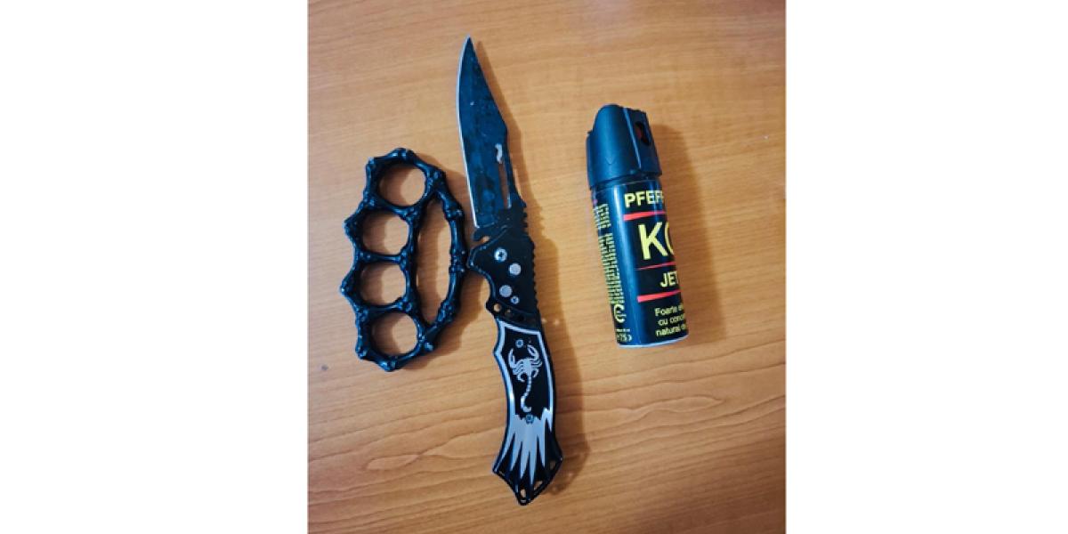 • la sfârșitul săptămânii trecute, jandarmii au găsit asupra a trei tineri un briceag de 24 cm, un obiect metalic tip “box” și un spray iritant lacrimogen