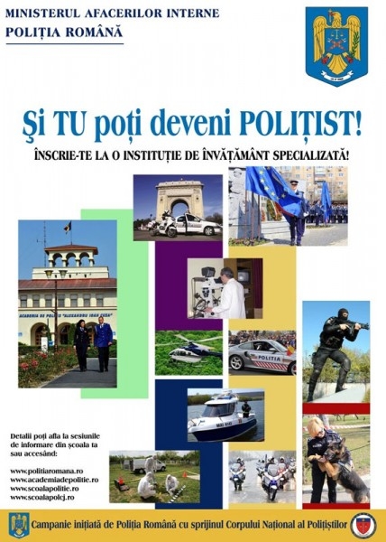 Timp de două zile, liceenii brăileni vor sta faţă în faţă cu oamenii în uniformă, care le vor oferi informaţii utile pentru a-i ajuta să devină poliţişti. Acţiunea se desfăşoară în cadrul campaniei naţionale "Şi TU poţi deveni POLIŢIST", de promovare, în rândul tinerilor, a profesiei de poliţist şi a ofertei educaţionale a instituţiilor de învăţământ ale Ministerului Afacerilor Interne.