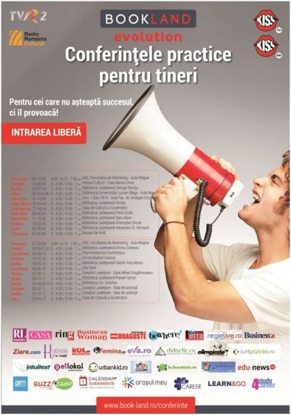 Tinerii vor avea astfel oportunitatea să întâlnească unele dintre personalităţile marcante ale oraşului, să le cunoască poveştile de succes şi să le adreseze întrebări în cadrul Conferinţelor practice BookLand Evolution, care se desfăşoară în fiecare seară, de luni până vineri (9-13 noiembrie 2015), la Biblioteca Judeţeană „Panait Istrati", în intervalul orar 15:00-16:30. În cadrul fiecărei conferinţe vor lua cuvântul câte trei profesionişti, iar liceenii şi studenţii pot participa gratuit. Iniţiativa are ca scop dezvoltarea personală şi profesională a tinerilor prin soluţii practice şi experienţe reale de viaţă, urmare a exemplelor oferite de invitaţii capabili să-i inspire şi să-i motiveze.