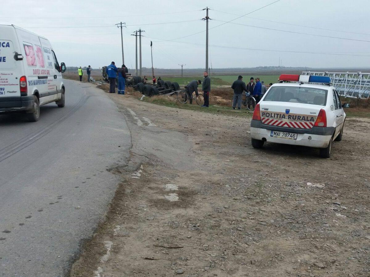 Un camion care avea o remorcă plină cu grâu, cu număr de Tulcea, dar condus de un bărbat din Constanţa, s-a răsturnat, azi-noapte, în zona localităţii Gropeni. Poliţiştii au stabilit că autotrenul venea spre Brăila, pe DJ 212, şi la ieşire din Gropeni, șoferul nu a adaptat viteza într-o o curbă periculoasă, a pierdut controlul volanului şi s-a răsturnat. TIR-ul s-a înţepenit practic într-un canal din zonă, iar şoferul, care era conştient, a fost prins în cabină. Au intervenit lucrătorii de la ISU- Descarcerare. Şoferul constănţean, de 36 de ani, a fost transportat la spital, însă nu a fost nevoie de internare. El a fost testat cu aparatul etilotest şi rezultatul a fost 0,48 mg-litru alcool pur în aerul expirat. S-a întocmit dosar penal pentru vătămare corporală din culpă şi conducere sub influenţa alcoolului.