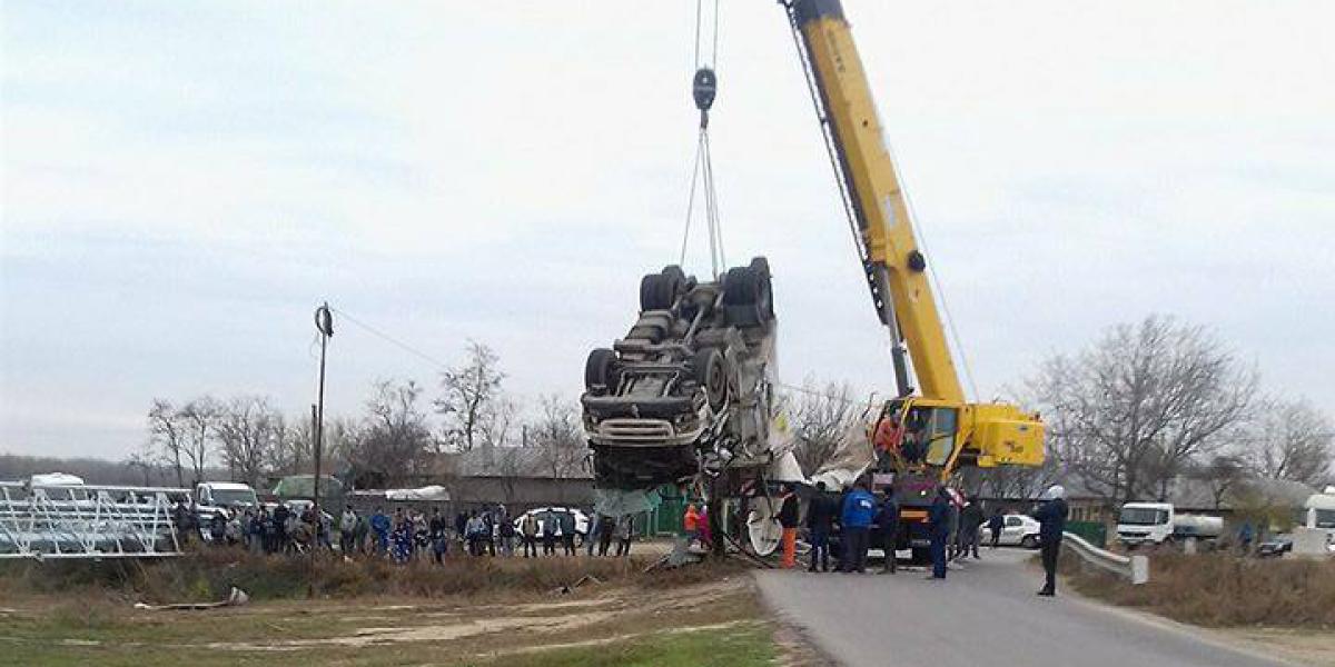 UPDATE: Autotrenul răsturnat azi-noapte a fost scos în urmă cu puțin timp, din canalul aflat în zona localității Gropeni. Traficul rutier în zonă a fost blocat timp de mai multe ore, mai ales că TIR-ul s-a răsturnat chiar într-o curbă periculoasă.