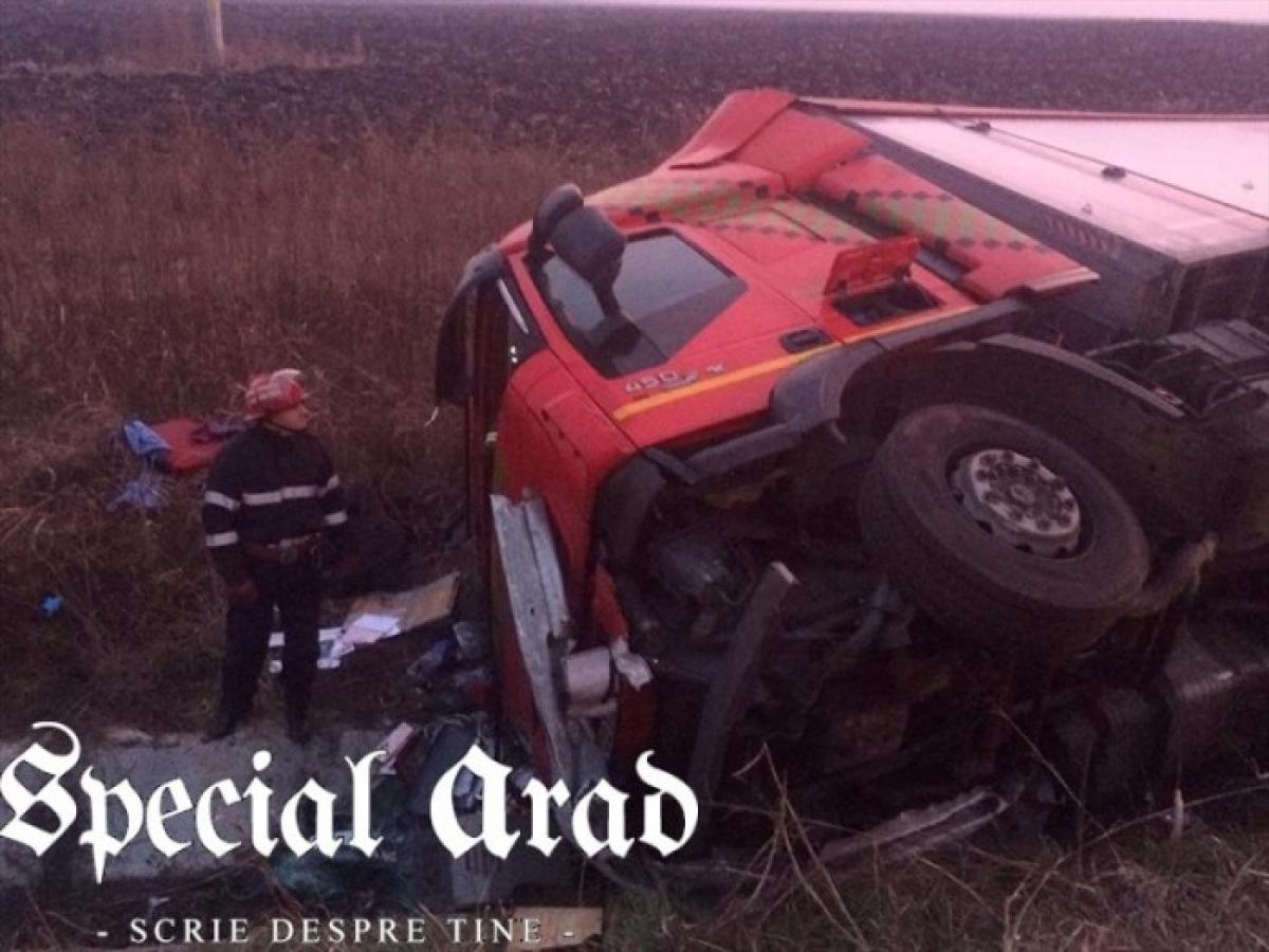 Un bărbat, șoferul unui TIR înmatriculat în Brăila, și-a pierdut viața aseară, după ce s-a răsturnat în afara părții carosabile pe Autostrada Arad-Nădlac, în dreptul localității Pecica.