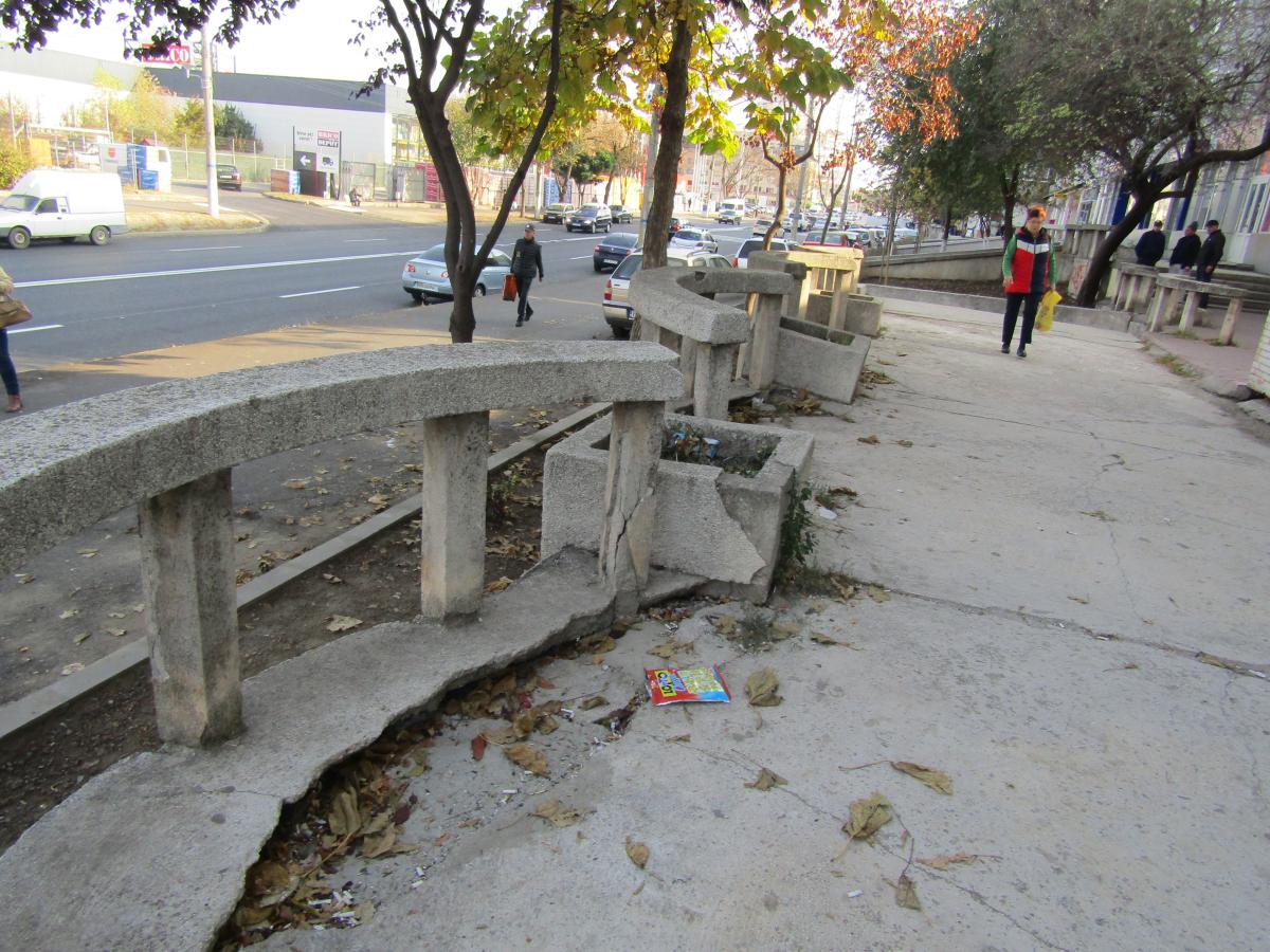 • jardinere și balustrade de beton, aflate într-o stare jalnică de ani de zile, reparate pe cheltuiala unor societăți comerciale care au sediul la parterul blocului F3 de pe Șos. Râmnicu Sărat • de-a lungul blocurilor F întreaga terasă de la parter este degradată și ar fi nevoie de o intervenție unitară pentru a se schimba aspectul zonei, mai ales acum, după ce strada și trotuarele au fost reparate de Primărie • situația este similară la parterul mai multor blocuri din municipiu, asociațiile de proprietari și Primăria acuzându-se reciproc că nu se implică pentru a face reparațiile necesare