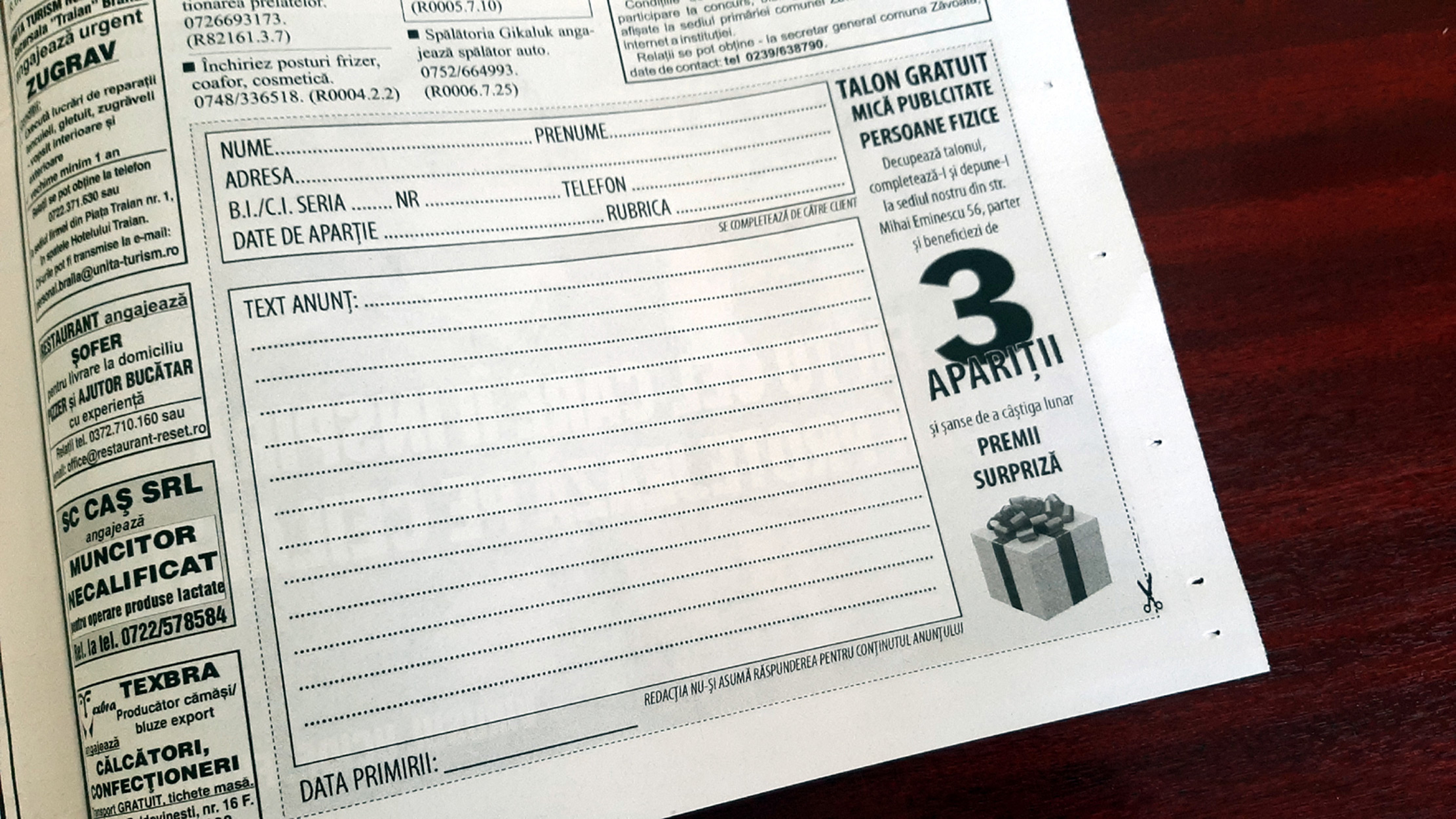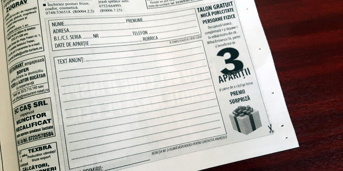 Nu uitați! Campania de mica publicitate gratuită continuă și, în fiecare lună, puteți câștiga premii surpriză!