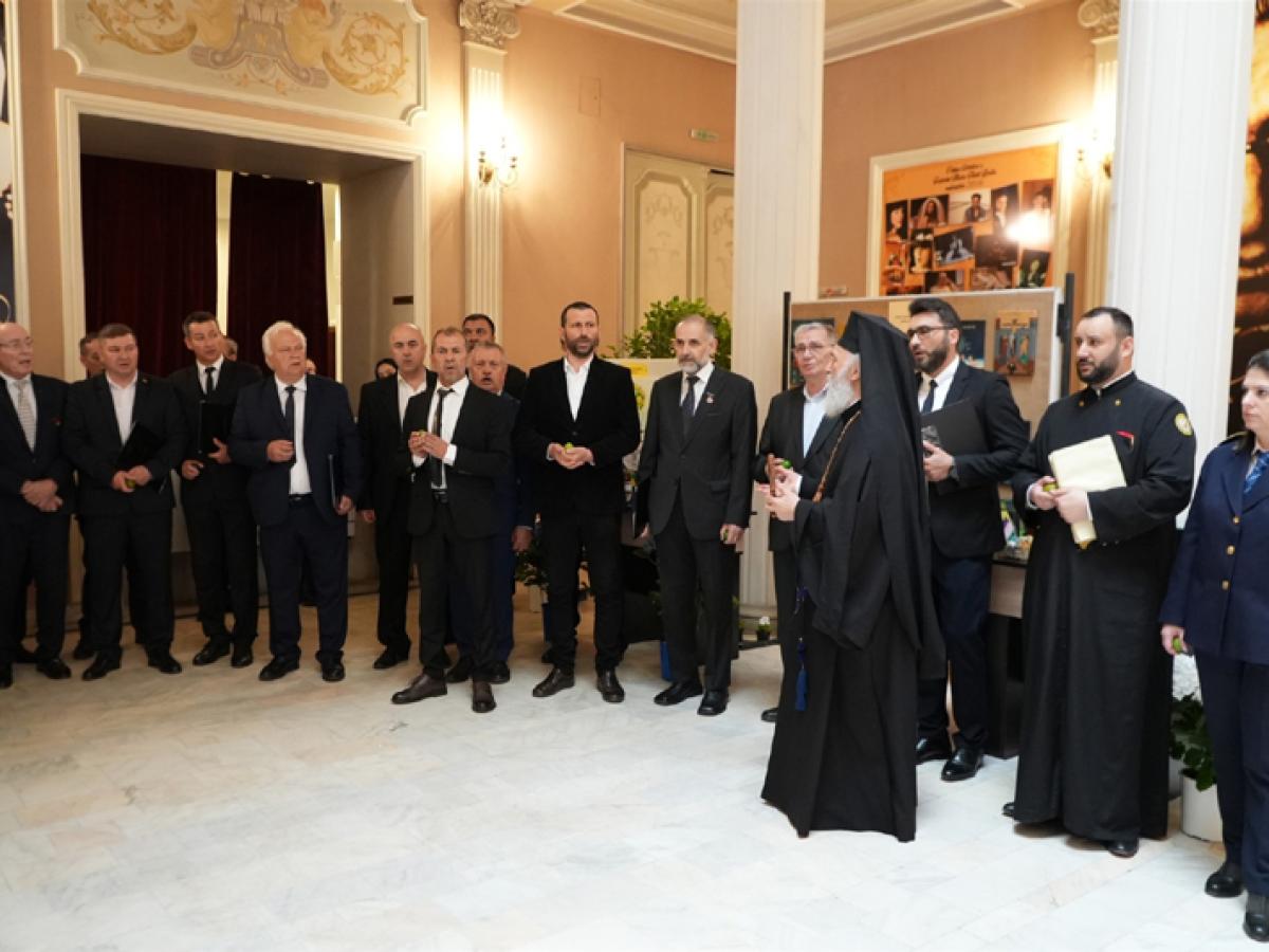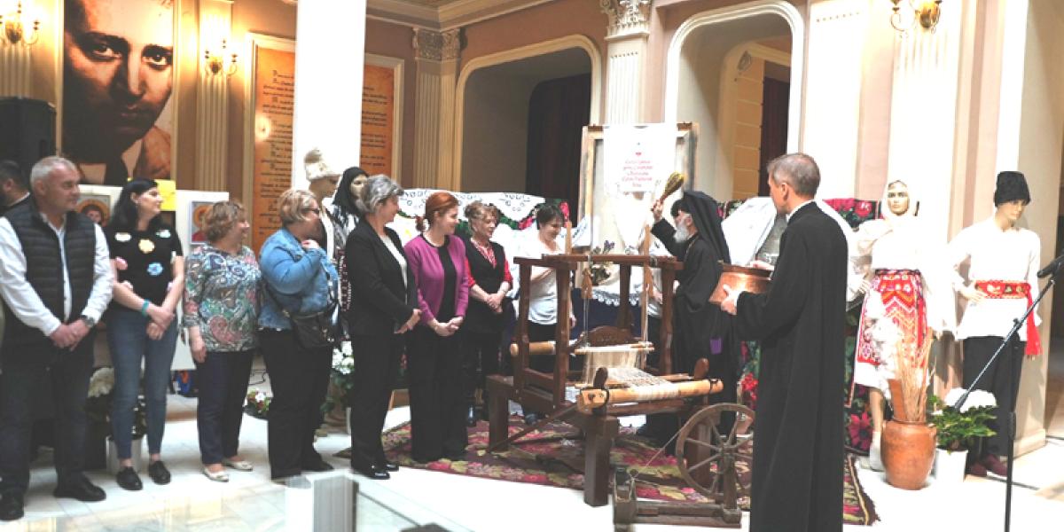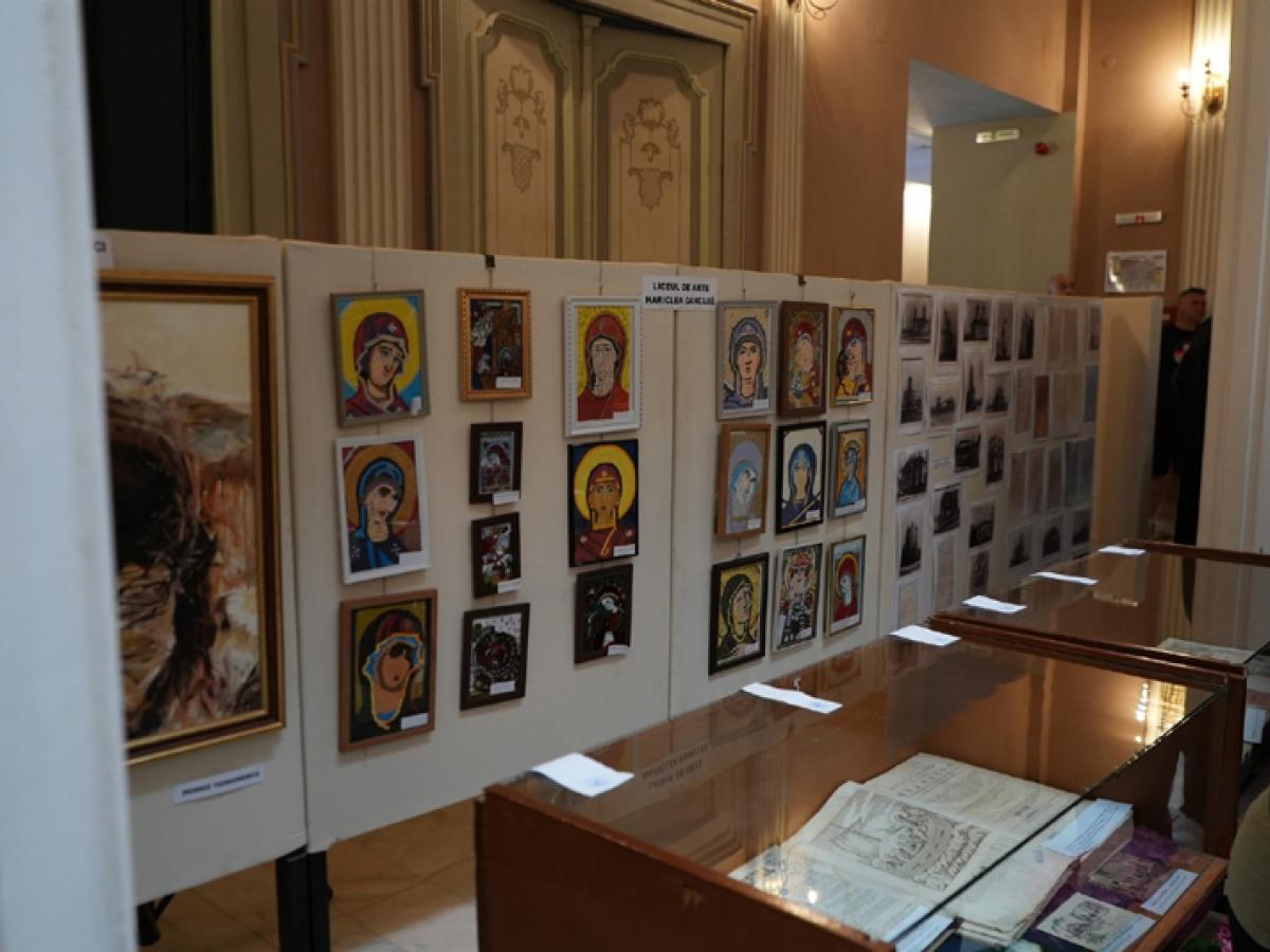 Expoziție pascală deschisă la Teatrul „Maria Filotti” în prezența ÎPS Arhiepiscop Casian, a unor directori de instituții și a autorităților locale.