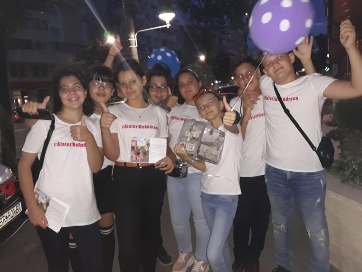 Nici elevii clasei a VI-a B de la Şcoala Gimnazială “Fănuş Neagu”, colegii de clasă ai Andreei, nu au stat deoparte weekendul trecut. Chiar dacă au avut de pregătit teme şi de învăţat pentru testările iniţiale, nimic nu i-a împiedicat să strângă, din nou, donaţii pentru colega lor. Aşa că s-au împărţit în două echipe şi au mers cu o urnă mobilă în mai multe zone din oraş, reuşind să adune peste 2.000 lei.