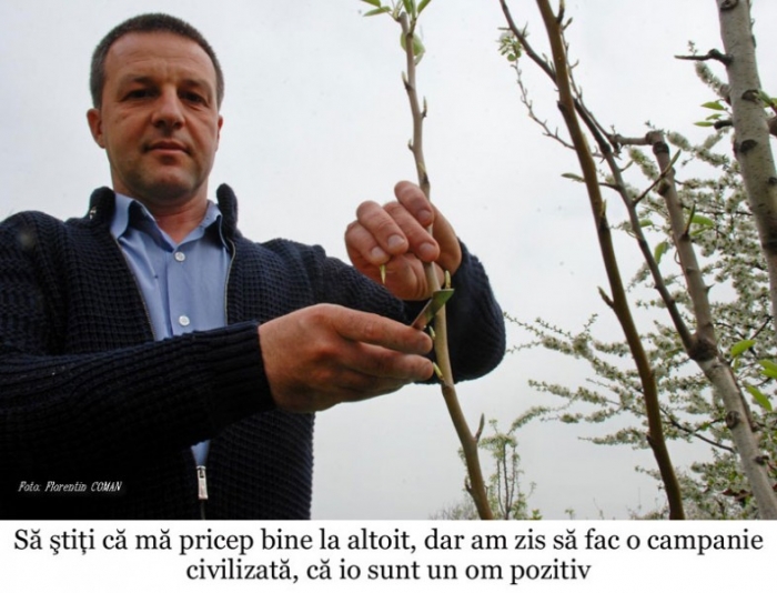 Pe de altă parte, eu unul chiar apreciez faptul că domnul Dragomir se pricepe la altoit peri, meri şi mai puţin cireşi, dar, ce vreţi?, nimeni nu-i perfect. Serios vorbesc, chiar m-a încercat un sentiment înălţător atunci când am citit în ziarul Obiectiv că domnul deputat Dragomir este acest Muhammad Ali al livezilor, altoind tot ce mişcă în jurul său. Şi spun acest lucru pentru că, cu tot respectul, mie domnul Dragomir mi-a lăsat impresia că nu ştie să facă nimic. Ca toţi politicienii, de altfel, dar asta este altă discuţie. Acum am aflat însă cu toţii că domnul Marian Dragomir se simte în livadă precum peştele în apă. E în elementul lui, e din acel film. Abia acum înţeleg de ce domnul Dragomir reuşeşte cu atâta naturaleţe să se ascundă după cireş când e în dificultate ca politician.