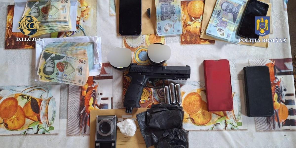 Au fost efectuate cinci percheziții domiciliare în județul Brăila, fiind descoperite și ridicate aproximativ 60 de grame 3-CMC (drog de mare risc), parte porționate în 38 de doze, sume de bani în lei și euro. S-a găsit şi un cântar de precizie, un pistol cu bile, precum și alte mijloace de probă.