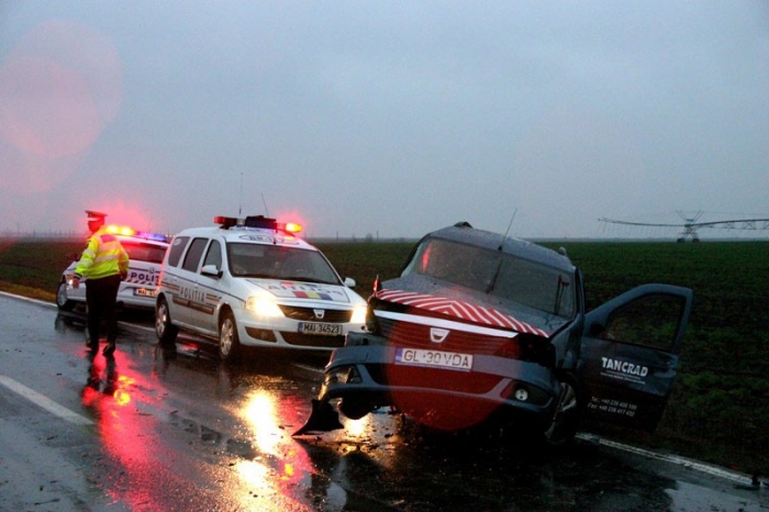 Potrivit informaţiilor transmise de Biroul de Presă al Inspectoratului de Poliţie Judeţean Brăila, vineri, în jurul orei 17.00, Marcel B. (30 de ani), din Galaţi, din cauza vitezei şi a condiţiilor meteo nefavorabile, a pierdut controlul volanului şi a acroşat autoturismul "Dacia Logan", condus de Marian T. (50 de ani) din Galaţi. Acesta, la rândul său, nu a mai putut stăpâni volanul şi a intrat pe contrasens, fiind tamponat de autoturismul "Volkswagen Polo", condus de Iulian R. (35 de ani), din Brăila.