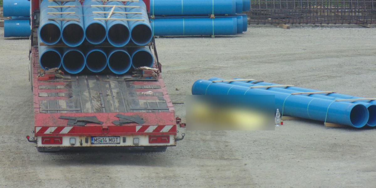 * victima era angajată a unei societăți din Mureș, subcontractor al firmei italiene Astaldi * când a început descărcarea țevilor, bărbatul nu și-ar fi ales locul potrivit pentru a staționa, astfel că un pachet de trei țevi din PVC s-a răsturnat peste el * atât Poliția, cât și Inspectoratul Teritorial de Muncă au deschis anchetă pentru a afla cum s-a produs cu exactitate accidentul de muncă mortal
