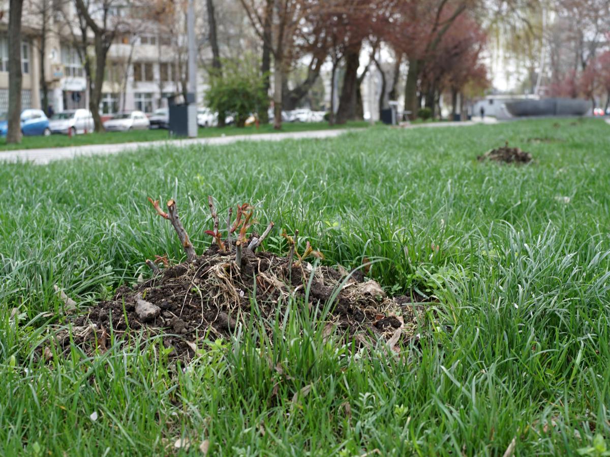 • asta după ce aproape toți butașii plantați anul trecut au fost furați • din fericire, Seroplant încă mai are în rezervă trandafiri din soiurile vechi, recuperate înainte de a începe lucrările de reabilitare