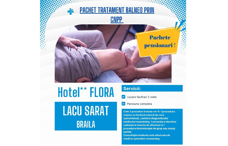 Pentru perioada iunie - septembrie, Casa Națională de Pensii Publice (CNPP) a alocat peste 600 de bilete de tratament destinate pensionarilor și persoanelor vârstnice, iar datorită cererii foarte mari, a fost organizată o nouă sesiune pentru perioada 16 octombrie - 2 decembrie 2024, când s-a suplimentat numărul de bilete de tratament cu încă 200, la Hotel Flora din Lacu Sărat Brăila. Această decizie vine ca răspuns la cererea ridicată pentru tratamente balneare. Potrivit directorului Sorin Boșneag, este prima dată, în ultimii 35 de ani, când se ia o astfel de măsură. ”Prin această inițiativă de suplimentare a biletelor, Casa de Pensii a demonstrat încă o dată angajamentul său față de sănătatea pensionarilor, creând un cadru accesibil și eficient pentru tratamente balneare. Oferind predictibilitate și acces la servicii de calitate, CNPP a reușit să contribuie la dezvoltarea stațiunilor balneare din România, iar Hotel Flora din Lacu Sărat este un exemplu de succes în acest parteneriat”, se arată în comunicatul remis de reprezentanții Unita Turism Brăila.