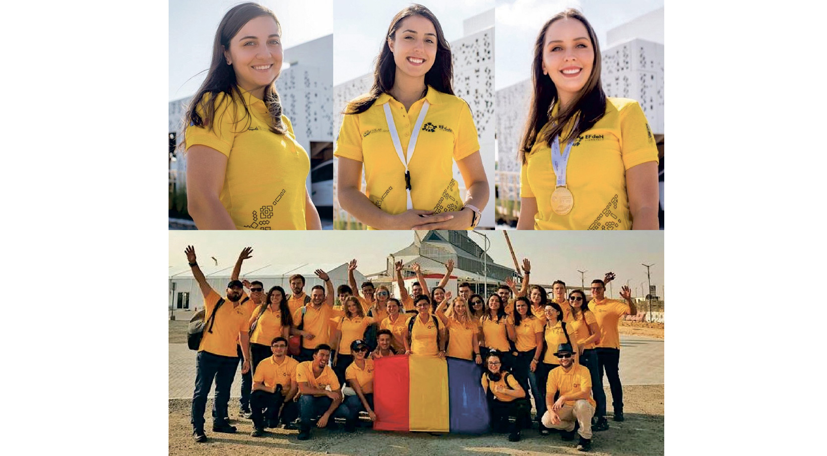 • Nicoleta Cruceanu, Laura Vintilă şi Ruxandra Micu fac parte din echipa EFdeN şi împreună cu alţi 30 de studenţi români au participat în perioada 14-29 noiembrie la cea mai mare competiţie din lume de locuinţe verzi, inteligente şi eficiente energetic: Solar Decathlon Dubai • tinerii au avut la dispoziţie 14 zile pentru a asambla locuinţa şi aceasta să fie gata pentru cele 10 probe de jurizare • creativitatea şi perseverenţa tinerilor români s-a concretizat în patru distincţii: premiul I la Comunicare, premiul II la Inginerie şi Construcţie, premiul II la Confortul Casei şi premiul III la Sustenabilitate • competiţia a reunit 15 echipe din 12 ţări de pe patru continente, România clasându-se pe locul 4 mondial