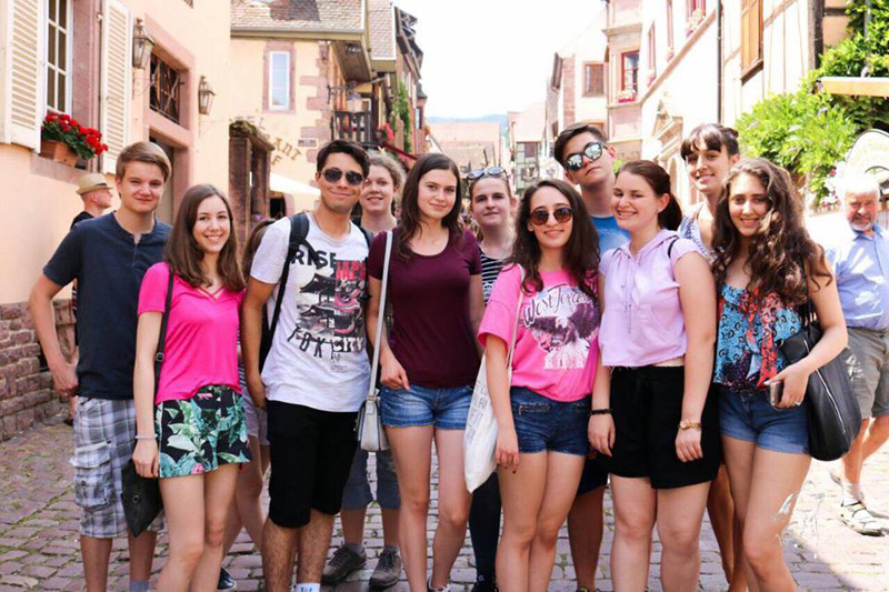 • în urma premiilor obţinute la Olimpiada Naţională de Limba Germană din 2016, Corina Andreea Preda, Răzvan Curcă şi Ştefan Popa au fost invitaţi să participe în perioada 27 iunie-18 iulie la un program de studii oferit de Ambasada Germaniei • pe parcursul a trei săptămâni, aceştia au văzut cum arată viaţa unui elev german, au participat la cursuri într-un liceu nemţesc şi au mers în excursii în mai multe oraşe, îmbunătăţindu-şi astfel cunoştinţele de limbă şi cultură germană