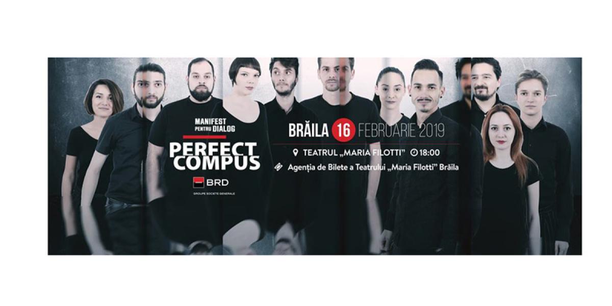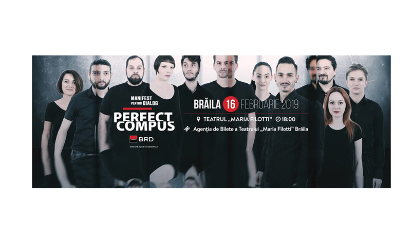 Sâmbătă, 16 februarie, de la ora 18.00, la Sala Mare a Teatrului “Maria Filotti” se joacă PERFECT COMPUS, un spectacol de Alexandra Badea, al Teatrului “Radu Stanca” din Sibiu.