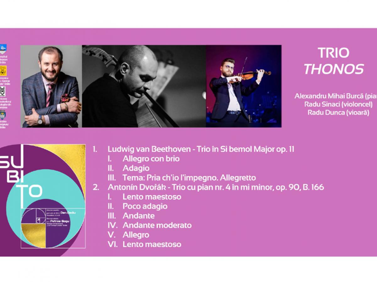 Trio-ul Thonos aduce împreună trei muzicieni de elită ai scenei românești: Alexandru Mihai Burcă (pian), Radu Sinaci (violoncel) și Radu Dunca (vioară).