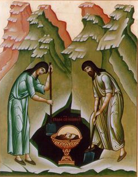 Pentru că se temea că Botezatorul ar putea învia dacă trupul i-ar fi fost îngropat alături de cap, Irod nu le-a dat ucenicilor decât trupul sfântului, care a fost îngropat în Sevastia. Capul a fost îngropat de Irodiada în curtea sa, la mare adâncime.
