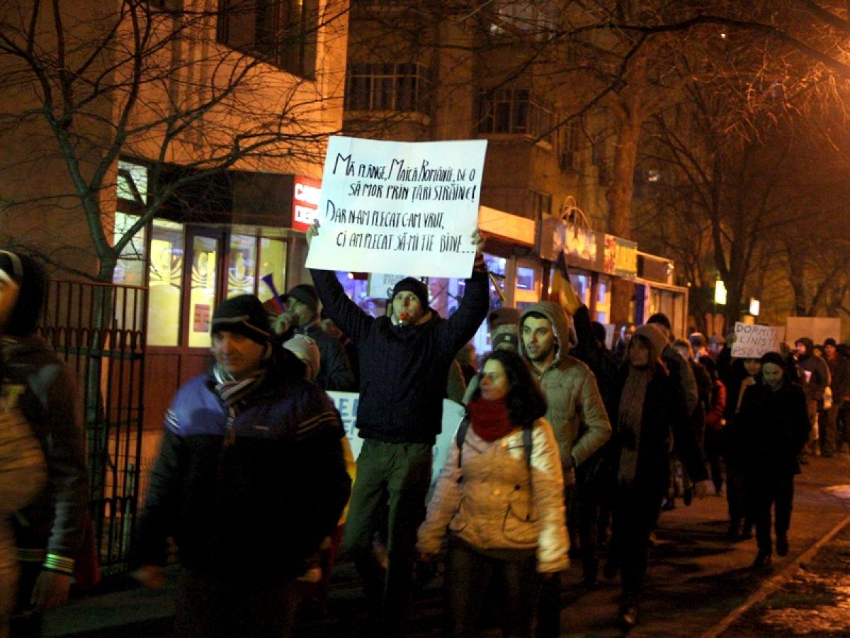 După ce s-a scandat și s-a huiduit copios, lumea a pornit înapoi spre Piața Independenței, pe bulevardul Cuza. La capătul bulevardului, în dreptul Palatului de Justiție, protestatarii au aplaudat.