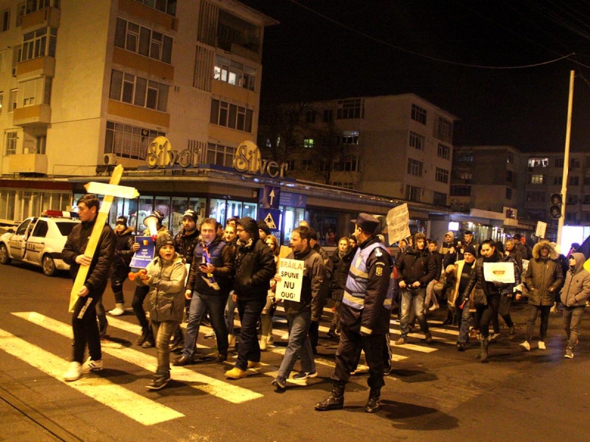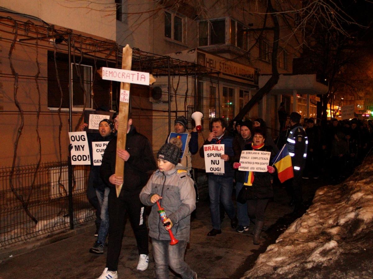 Ieri seară, aproape 1.000 de brăileni au scandat: ”România, Trezește-te!”, ”PSD Ciuma Roșie!”, ”Jos Ordonanța!” sau ”Dragnea nu uita, România nu-i a ta!”. Protestatarii au plecat în marș către Bariera Călărașilor. Cei care circulau cu mașinile pe Calea Călărașilor claxonau în semn de solidaritate cu brăilenii ieșiți în stradă.